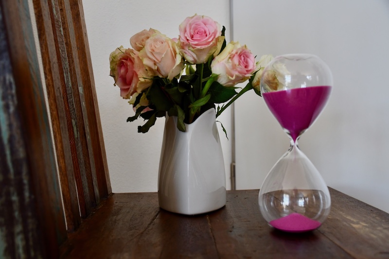 Diese 30-Minuten-Sanduhr bekam ich geschenkt, zusammen mit Tipps, was ich in der Zeit machen könnte: ausruhen, ein Gespräch mit Gott führen, jemanden anrufen, ein Buch lesen, einen Spaziergang, … Zuerst war ich etwas ratlos und begann zu überlegen, was ich nicht machen wollte: arbeiten, putzen, fernsehen …